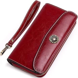 Portefeuille Femme Cuir Véritable Compagnon Porte Monnaie avec Porte Chéquier 12 Emplacement Cartes, Porte Feuille pour Femme,Rouge,10 * 3 * 19.5cm