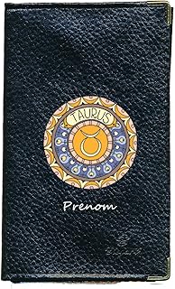 Pochette Etui Protection Cuir Porte Carte Grise papiers Voiture permis de Conduire Noir Taureau Signe du Zodiaque Astrologique personnalise avec Votre prenom
