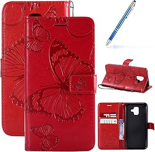 Robinsoni Coque pour Samsung Galaxy A6 2018 Housse de téléphone en Cuir,Jolie Papillon Femme Portefeuille Étui à Rabat Magnétique Livre Stylé Flip Case Anti-Choc Coque pour Galaxy A6 2018,Rouge