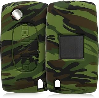 kwmobile Accessoire Clé de Voiture Compatible avec Peugeot Citroen 3-Bouton - Coque de Protection Souple en Silicone - Camouflage Noir-Vert Clair-Vert foncé