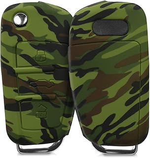 kwmobile Accessoire Clé de Voiture Compatible avec Audi Clé 3-Touches - Coque de Protection Souple en Silicone - Camouflage Noir-Vert Clair-Vert foncé