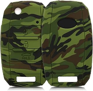 kwmobile Accessoire Clé de Voiture Compatible avec Kia Keyless Go 3-4-Bouton - Coque de Protection Souple en Silicone - Camouflage Noir-Vert Clair-Vert foncé