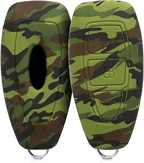 kwmobile Accessoire Clé de Voiture Compatible avec Ford Keyless Go 3-Bouton - Coque de Protection Souple en Silicone - Camouflage Noir-Vert Clair-Vert foncé