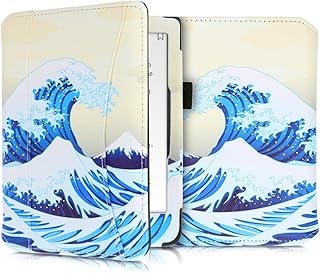 kwmobile Coque Liseuse Compatible avec Kobo Clara HD - Étui à Rabat en Simili Cuir avec Fermeture Magnétique - Belle Vague Japonaise Bleu-Blanc-Beige