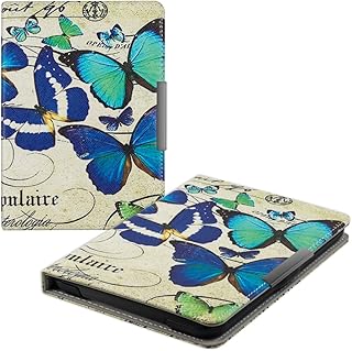 kwmobile Étui liseuse Compatible avec Kobo Clara HD - Housse avec Rabat magnétique en Simili Cuir - Papillons Bleu-Menthe glaciale-Beige
