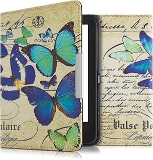 kwmobile Étui liseuse Compatible avec Amazon Kindle Paperwhite - Housse avec Rabat magnétique en Simili Cuir - Papillons Bleu-Menthe glaciale-Beige