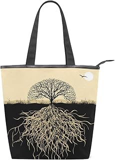 Sac fourre-tout pour femme, motif arbre de vie avec racines, en toile, avec poignée sur le dessus