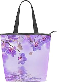 Sac fourre-tout pour femme, motif orchidées tropicales violettes en toile avec poignée sur le dessus