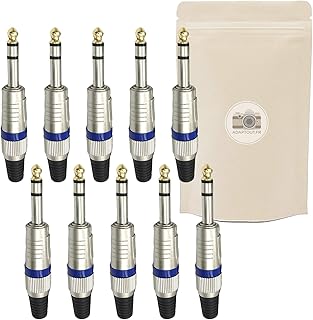 Lot de 10 Gros Jack 6.35mm Bleu Gold Plaque Or Prise Jack 6.35 6,35mm à Souder Fiche Male Connecteur Soudure - ADAPTOUT Marque FRANÇAISE