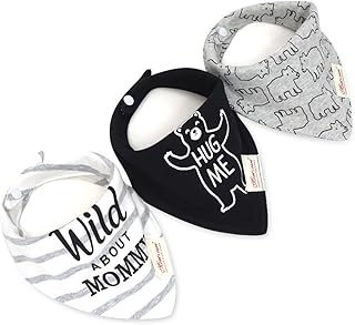 CuteOn Unisexe 3 paquet Coton Bébé Bandana Bavoirs | Absorbant Triangle Drool avec Snaps | Cadeau Set pour les Nouveau-nés Ours