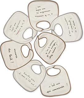 Nos bavoirs bandana en lange sont eux parfaitement adaptés à ces étapes de la vie de bébé. Avec leur forme triangulaire et leur matière souple et légère, ils ne le gêneront pas pour se déplacer et restent discrets. Ils protègeront bien les vêtements sur l'encolure et le haut de la poitrine et garderont bébé au sec. Attention, on ne laisse pas bébé dormir sans surveillance avec un bavoir. Bavoirs bandanas extra doux 100 % coton bio - Dos en polaire doux qui protège l'humidité de votre bébé pour aider à prévenir les irritations de la peau et les éruptions cutanées. Idéal pour les bébés qui bavent, souffrent de reflux ou commencent leur voyage de sevrage - Forme spécialement conçue pour éviter les plis autour du visage de bébé - Boutons-pression réglables sans nickel (convient pour 3 à 36 mois). Un cadeau idéal pour les fêtes prénatales, les nouvelles