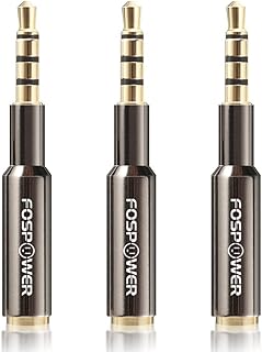 FosPower Adaptateur Extension de Fiche Jack 3,5mm Mâle à 3.5mm Femelle AUX Stéréo Audio - Jack pour Prise d’Écouteurs, Lecteur de Carte bancaire de paiement, TRRS - Plaqué Or 24k – Lot de 3