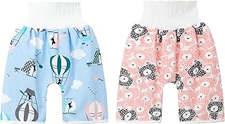 Lot de 2 Culotte d'apprentissage Lavable Réutilisation Anti-Fuite Respirant 100% Coton Culottes Bébé Fille/Garçon Couvre Couche pour Enfants