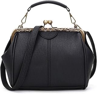 Vintage Kiss Lock Sacs à Main en Cuir PU Sac à Main fourre-Tout Classique rétro poignée supérieure Sac bandoulière Sac à bandoulière pour Dames et Femmes