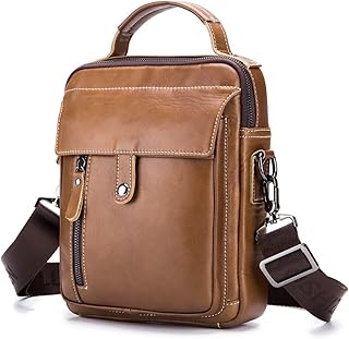 Petit Sac Bandouliere Homme Sacoche en Cuir Véritable Bandouliere Sac à main Pochette Epaule Sac a Dos Homme Besace Cartable Cuir Crossbody Sac de voyage Sac Porté épaule Marron