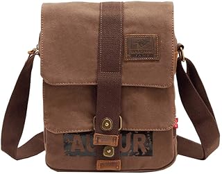 Sacoche Homme Bandouliere Toile Pochette Sac d'épaule Sac à Bandoulière de Rétro Cartable Marron café
